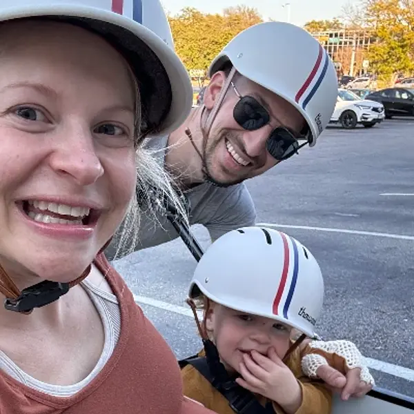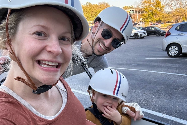 We won this bike at the Austin Humane Society gala auction in honor of our dog who passed away. Now we ride it all the time with our son Zephyr and new pup Digs!