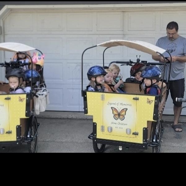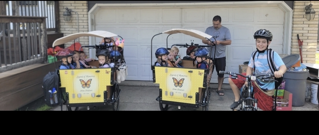 We have a family of 6. I started running a home childcare in October 2020. I heard about the bunch bikes in 2021 from another local provider that I was following and kept dreaming! We reached out to Bunch Bikes in 2024 and they were amazing to work with. We use our bikes primarily for our childcare but occasionally for our own kids too! I love that it allows the children the opportunity to learn and see the city we live in. I wish the seatbelts were a little easier to work with for littles!