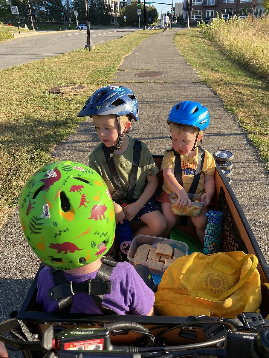 I wanted a way to be able to bike around my three kids by myself so that we could go on fun bike adventures and bike commutes even when my husband was unable to join. We biked through the winter last year and it saved my mental health when seasonal depression threatened to kick in. It has opened our eyes to so many different parks and experiences that we would miss if we were in a car. I love the freedom it offers and the fact that an 8 mile bike ride is easy and not daunting at all with the pedal assist. I love cruising past cars in traffic, being a part of nature, getting to park right by the doors to stores and never worrying about parking downtown. The only real complaint I have is that we do have lots of bumpy routes we travel and I wish there was better suspension for that. However my kids don’t seem too bothered as long as I warn them of big bumps.