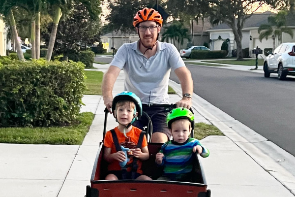 We often let the kids pick their mode of transport before trips around town - they've never picked the car! Love that it's super stable at stoplights, and the boys love snacking and chatting along the way.