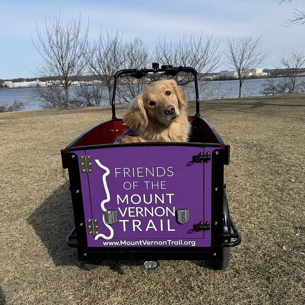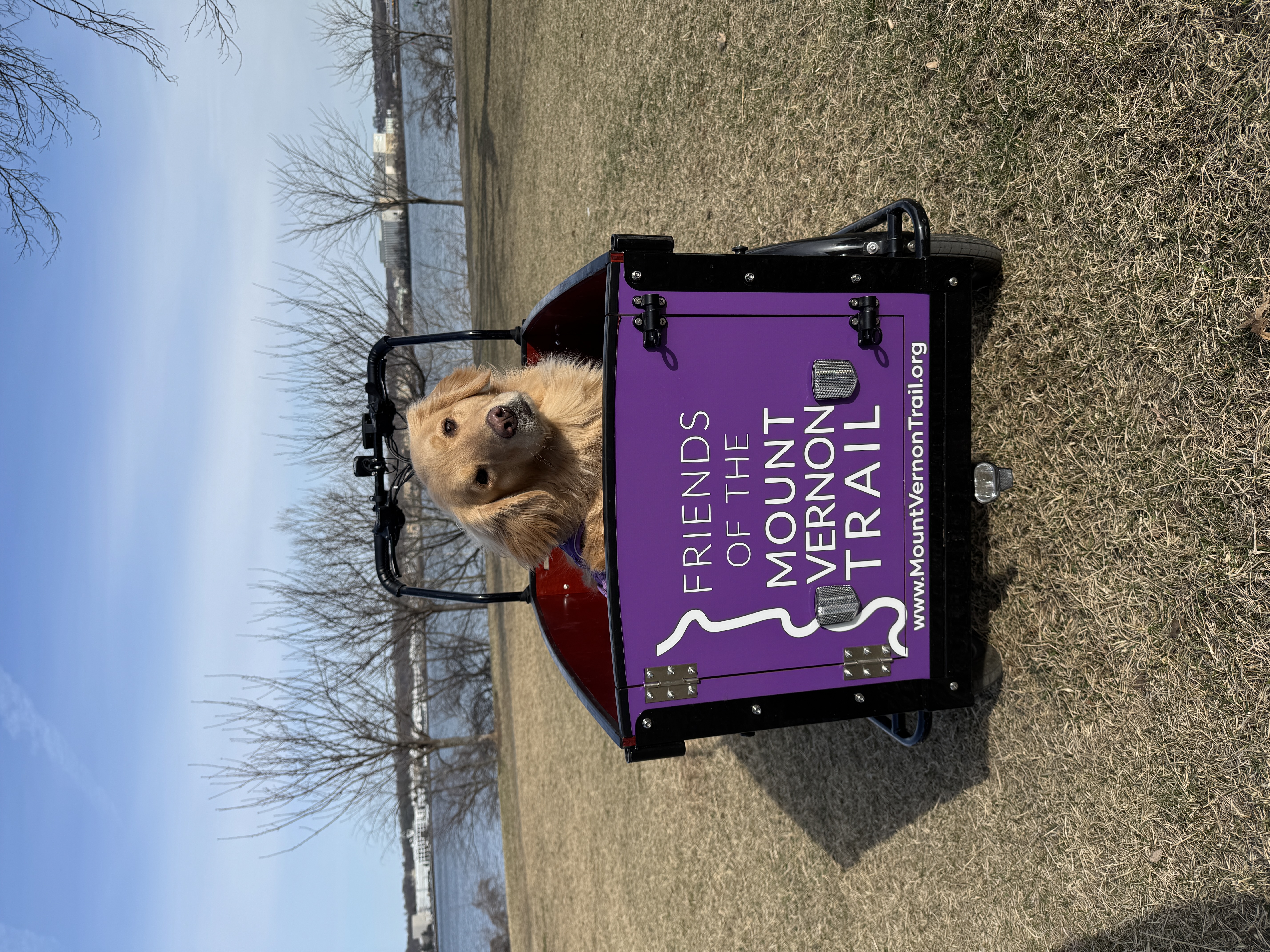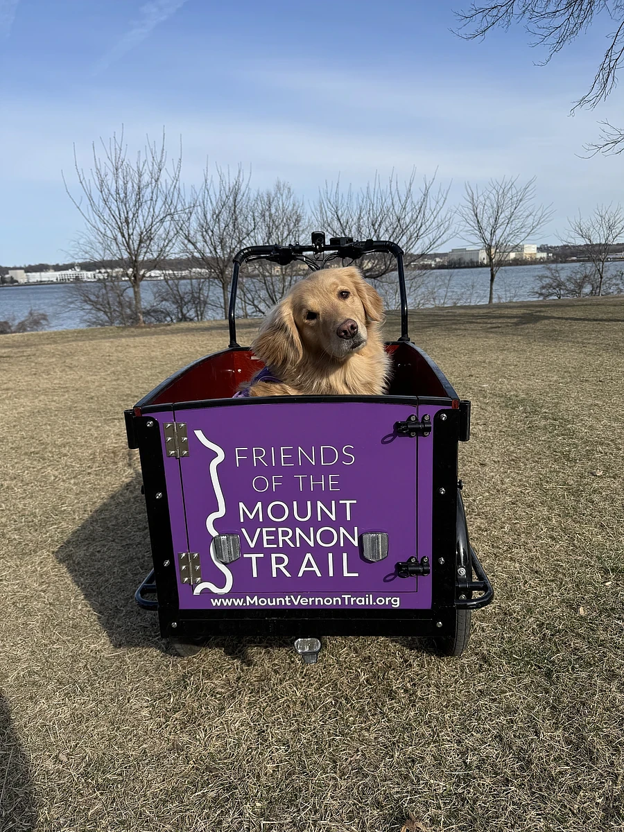 We are Friends of the Mount Vernon Trail! We use our Bunch Bike, Dolly Cartin, for volunteer events and environmental outreach. Jolene the Golden loves her new ride too!