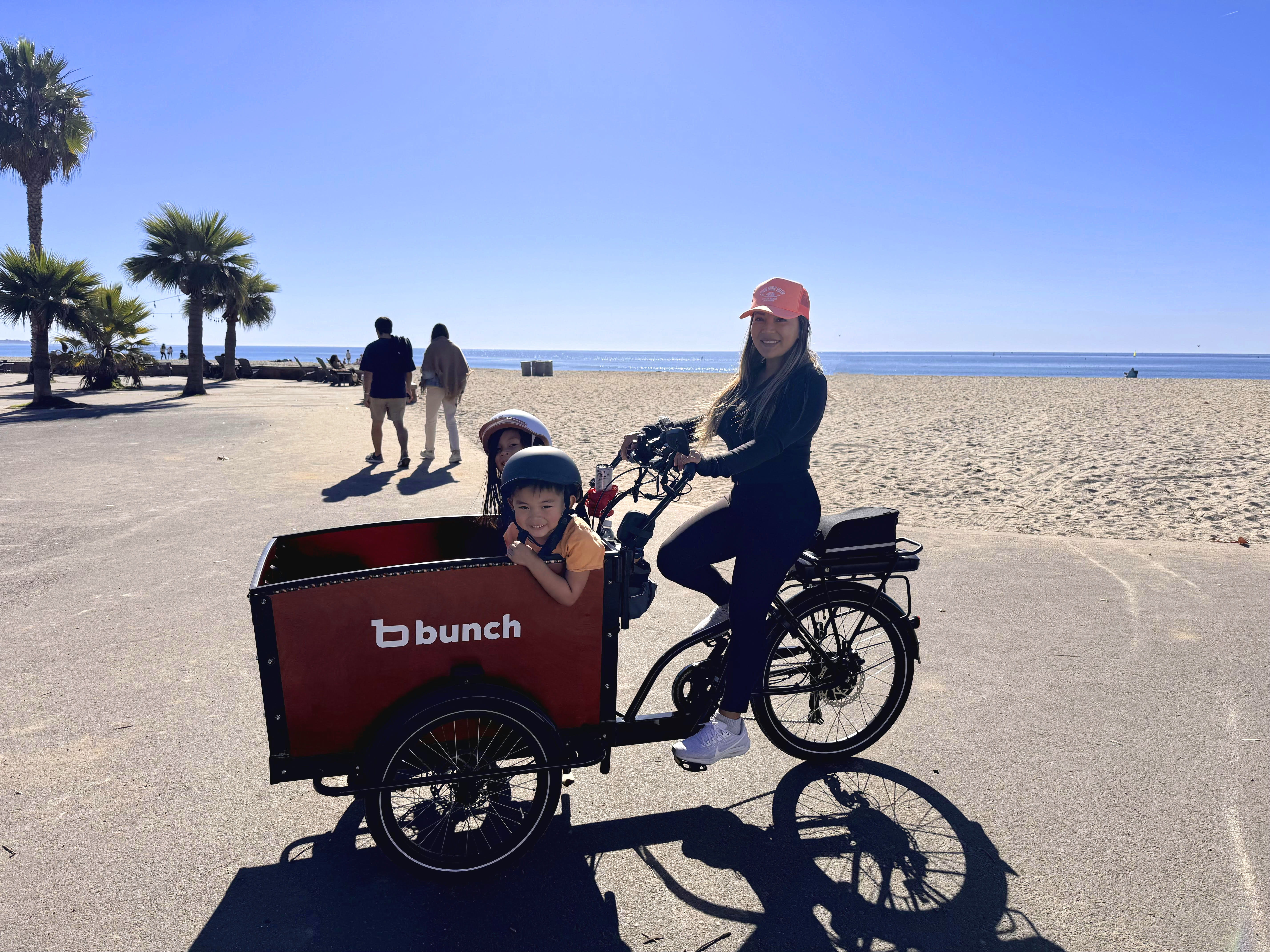 We wanted a fun and family-friendly way to get around together that would allow us to enjoy the outdoors and the Bunch Bike was the perfect way to do it! We can get to the beach, parks and restaurants from our bike in 15 minutes or less. We even bring our dogs along and it's fun for all of us! Since I am short, I love its stability as it has three wheels and stable brakes. I also love that it has an electric motor to help me get up some of those steep hills. I also love that it allows me to talk with and interact with my kids because they're sitting in front of me, rather than behind like other family bikes we looked into. The only downside would probably be getting used to driving the bike with two wheels in front when turning. It takes some practice but I got used to it!