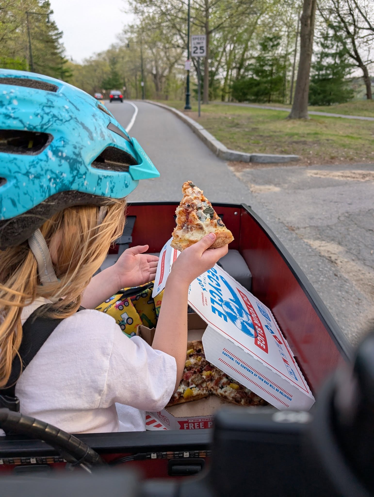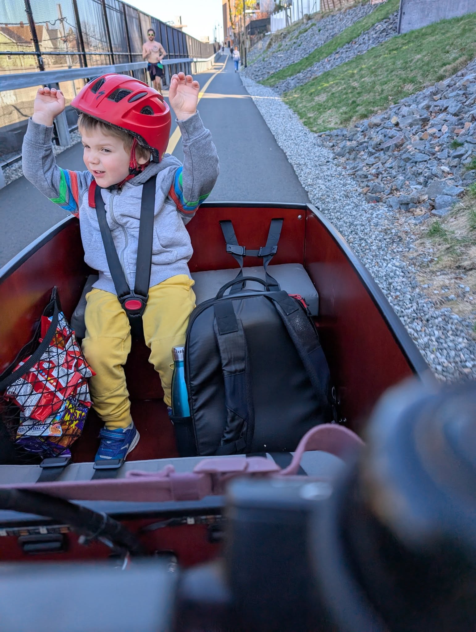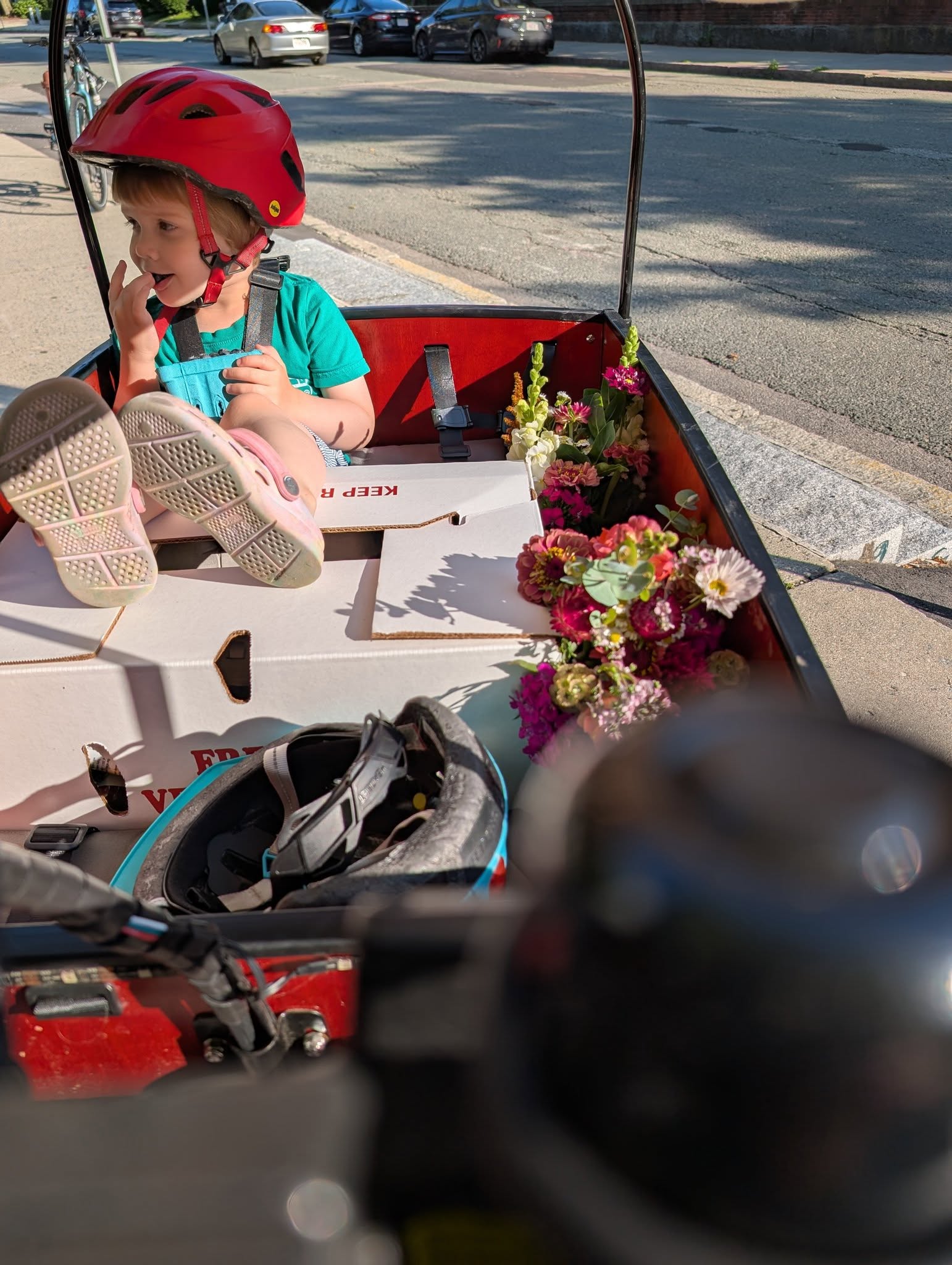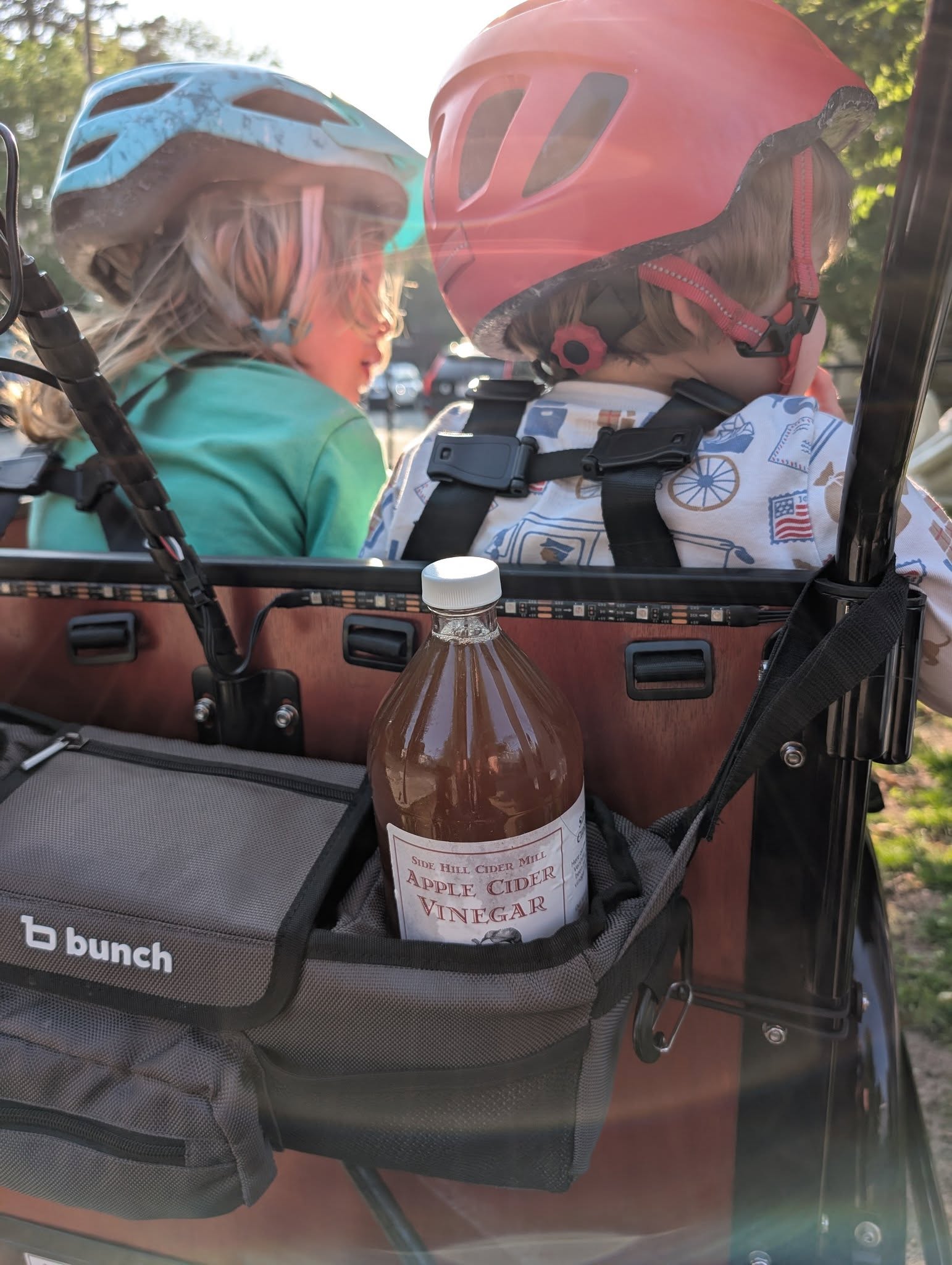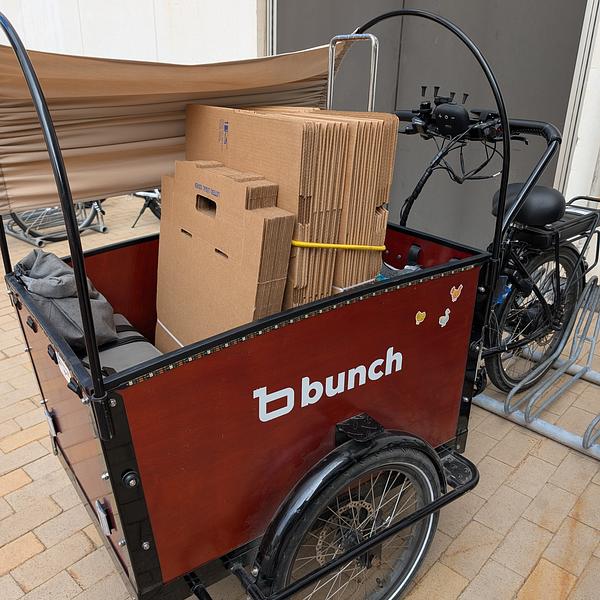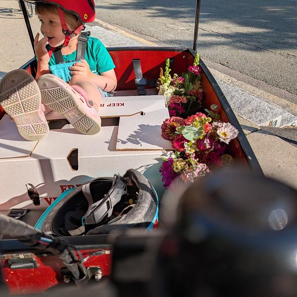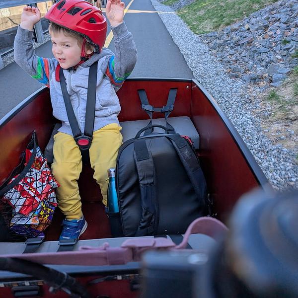 We were sick of sitting in traffic. Decided to become a cargo bike family! We rode our first trike during a family trip to Copenhagen, and when we got back signed up to borrow a Bunch from the ebike lending library (Community Pedal Power) and fell in love. Within a week we decided to purchase (decision made easier by the back to school sale!) We use our Bunch primarily for school/daycare dropoffs followed by parent commutes, but we have also done grocery runs, beach trips, and birthday party supply deliveries (you can fit so many pizzas in this baby!) I love that the kids can easily eat snacks, read books, etc without having to worry about holding on or balancing themselves - and I don't have to find my balance at a stop light or keep us from toppling as we get going again, which means I can focus on other things like the cars around me.