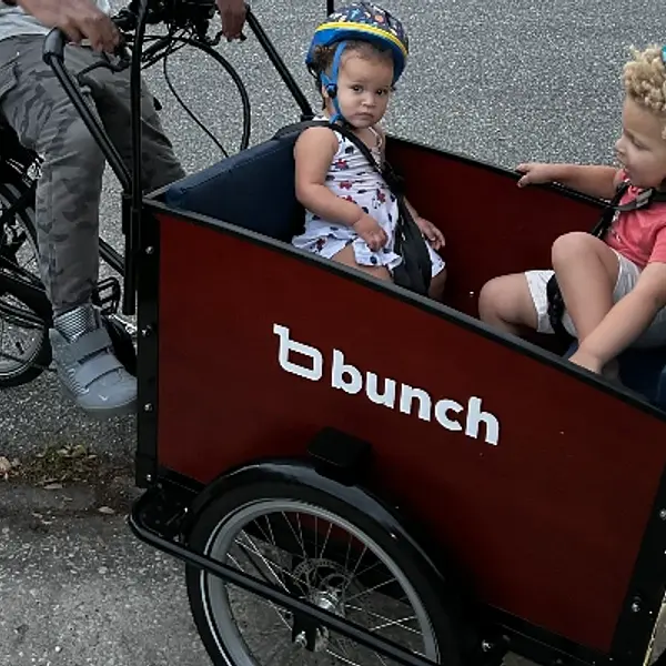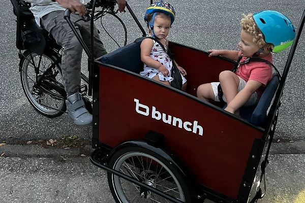"It's fantastic! I love the roominess of the front seat for my little family, and it's really easy for me to drive safely. We love to bike around the city with music :) "