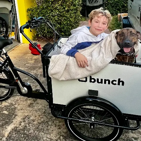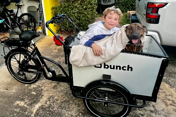 I bought this for short trips with our semi large dog. We also have two grandsons who come along. Love that my dog and kids are in front of me instead of behind. Much safer!
