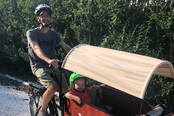 We ride to our main street and the local beach just down the street. We love how having the kids in front of us and how stable it is. It's easy to park and the kids can climb all over it.