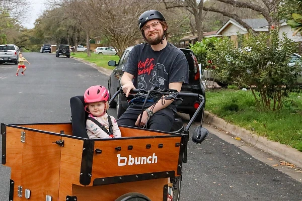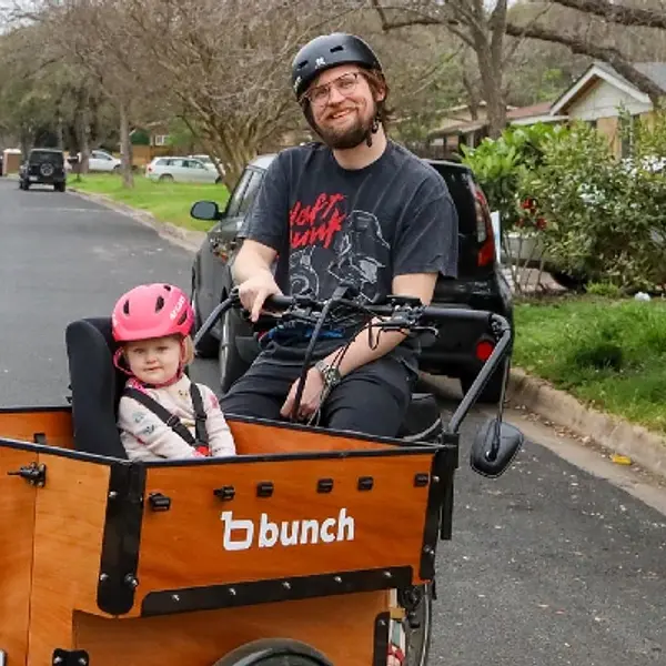 After moving to Austin, the bunch bike was a perfect compromise to avoid having to drive everywhere. We use it for library, park, groceries, and everything in town - can always find parking!