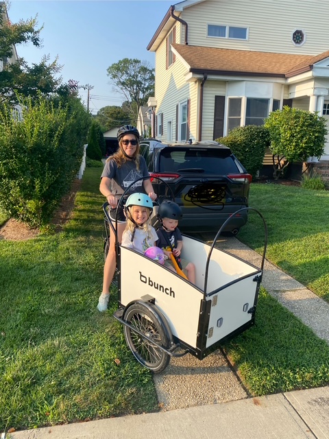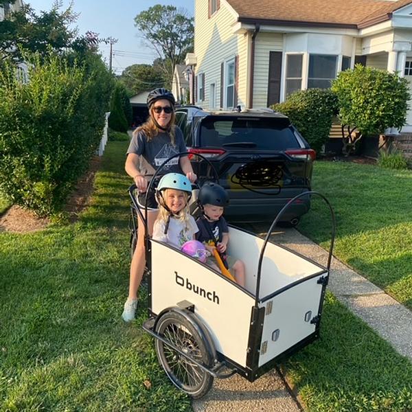 We live in the most amazing beach town, but during the summer months it can get really crowded and difficult to park. We're not quite close enough to walk to the beach with our littles (2 and 5), but packing up the car seems so wasteful. We considered getting a golf cart like many of our neighbors, but we realized we would still have to look for parking. With the bunch bike we get to pull right up to the bike rack area without stressing about parking! I love how easy it is to pedal and how multi-functional it is. It's obviously great for the kids, but I've already used it many times for myself to haul groceries, coolers to the beach, and toys for the playground.