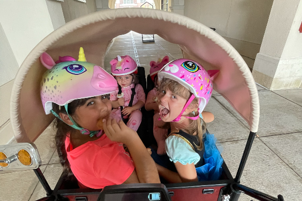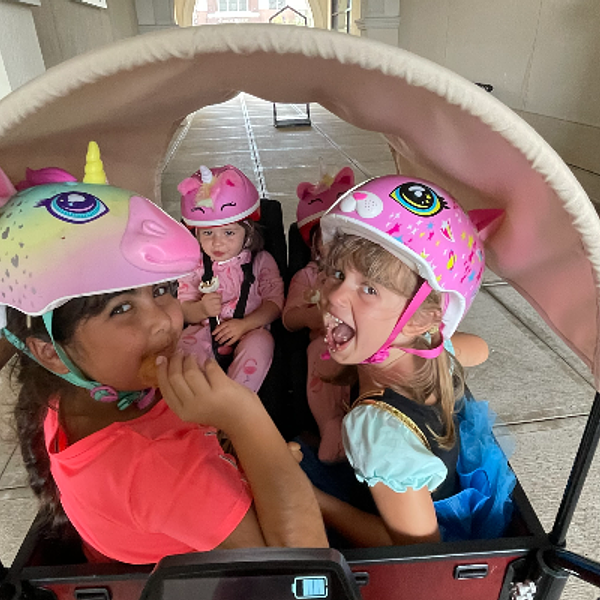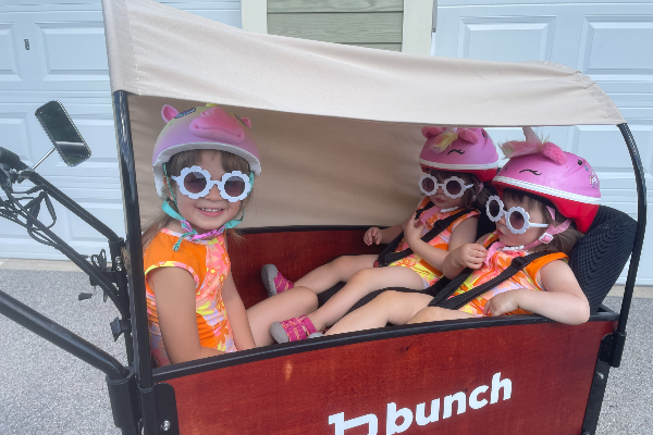 We go on daily rides to the park or Starbucks. We have a 5 year old girl and twin toddlers. 7 year old friend also goes with us often - everyone loves the bike!
