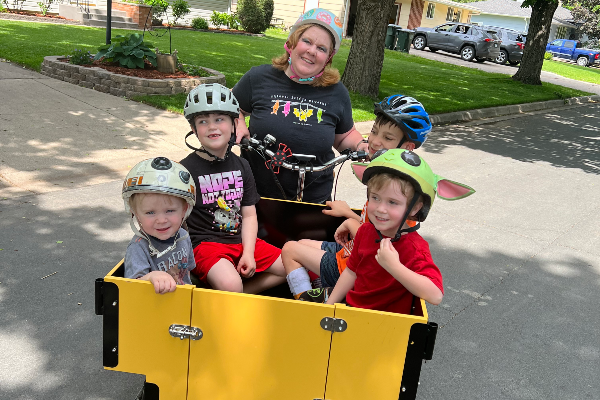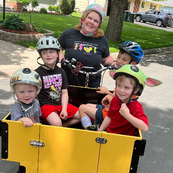 We have 4 children, our oldest has Cerebral Palsy, and can’t always bike on long rides. I love that all the kids can come with, and we can chat with each other during a ride. We love our bike and use it often!