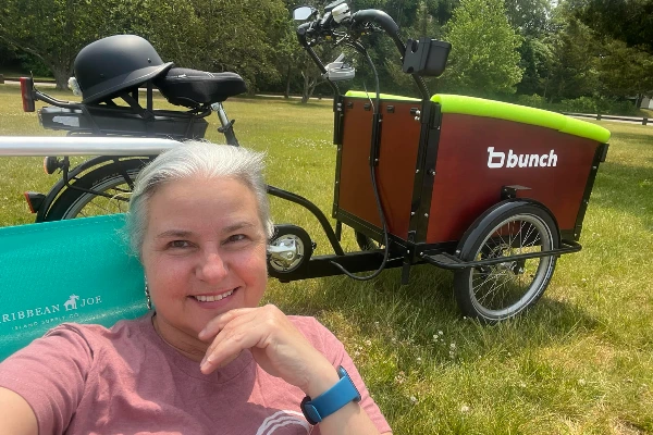 I was looking for a way to run errands, beat traffic, avoid "pay to park" at the beach and ride with my grandson safely... Voila BUNCH BIKE! Dual motorcycle hitch will carry the Bunch anywhere.