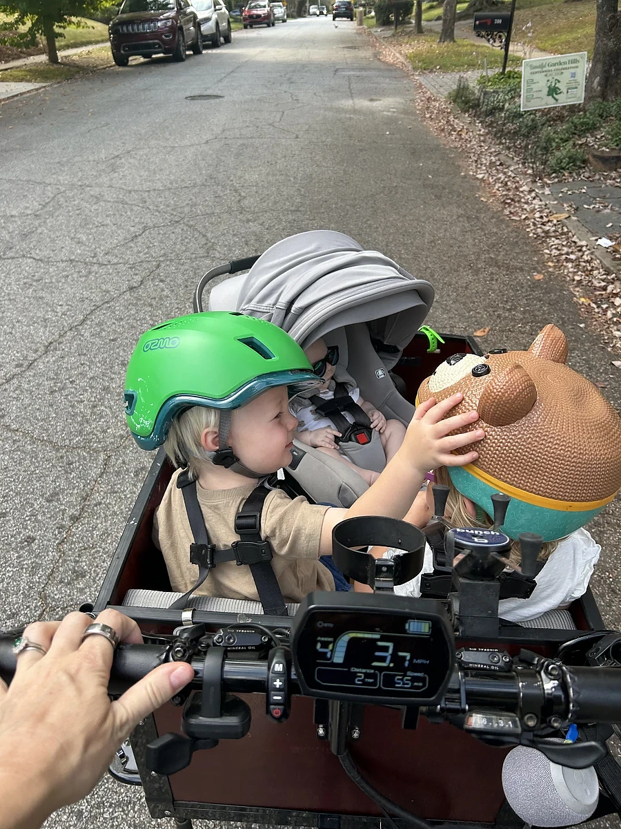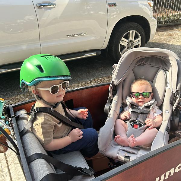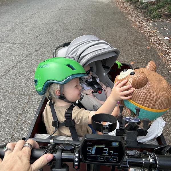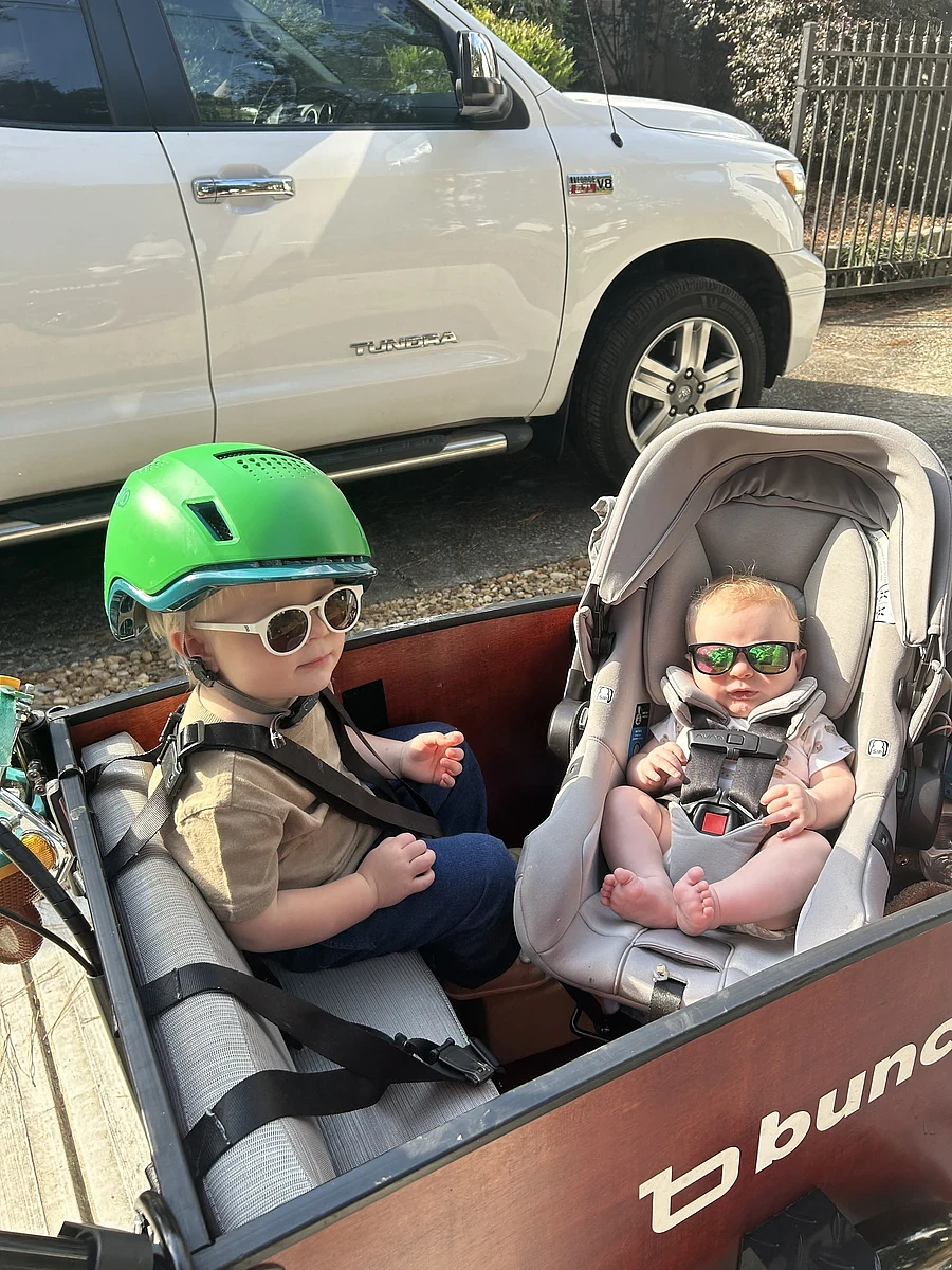 My toddler hates car rides and I hate cars with an unhappy toddler. When I was 8 months pregnant with our 2nd child I purchased a bunch bike 2nd hand to spark some joy for the upcoming postpartum period. It’s been such a wonderful time riding with my toddler and now with our baby in the babymee seat. Grocery trips, playground visits, school drop offs and joy rides ..we love our bunch.