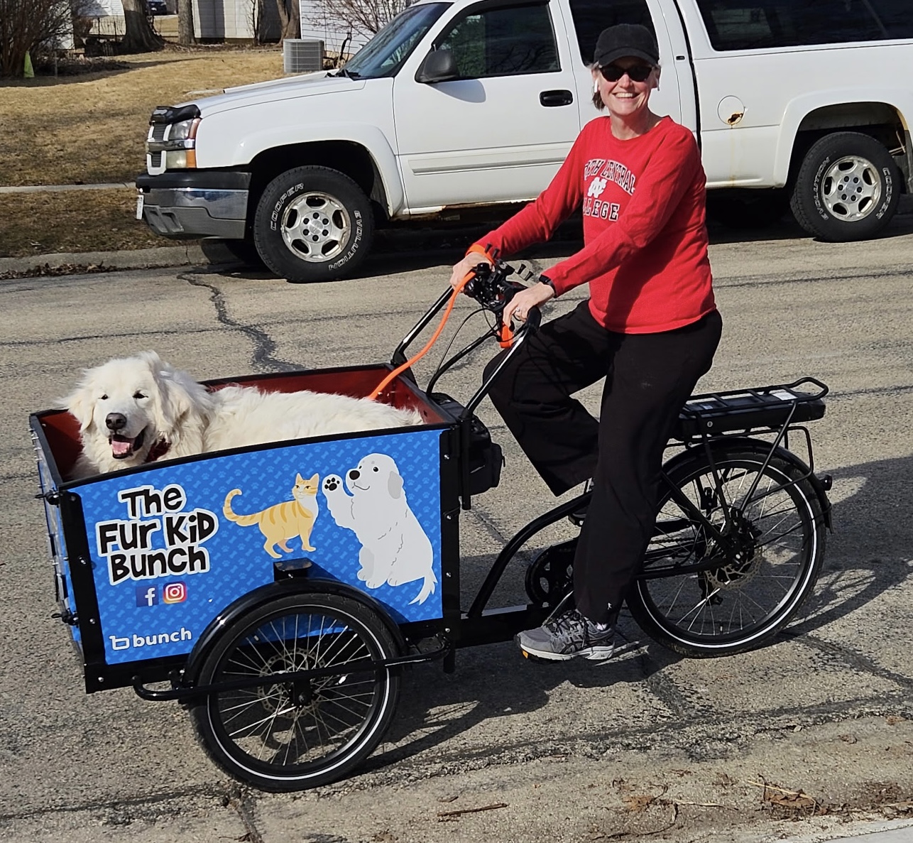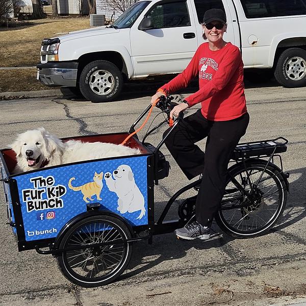 My Great Pyrenees is a rescue and has joint problems that limit her ability to walk longer distances. I thought this would be the perfect way to get her out and about and enjoy nature with me. I also plan to use the bike to run errands that need more capacity than a normal bike would provide, like grocery shopping or going to the YMCA with my giant gym bag. I like the front-opening door - having a 140lb dog, there's no way I could lift her into the bike! I wish the cargo box was a little bigger - it's a tight fit for her in there lying down.