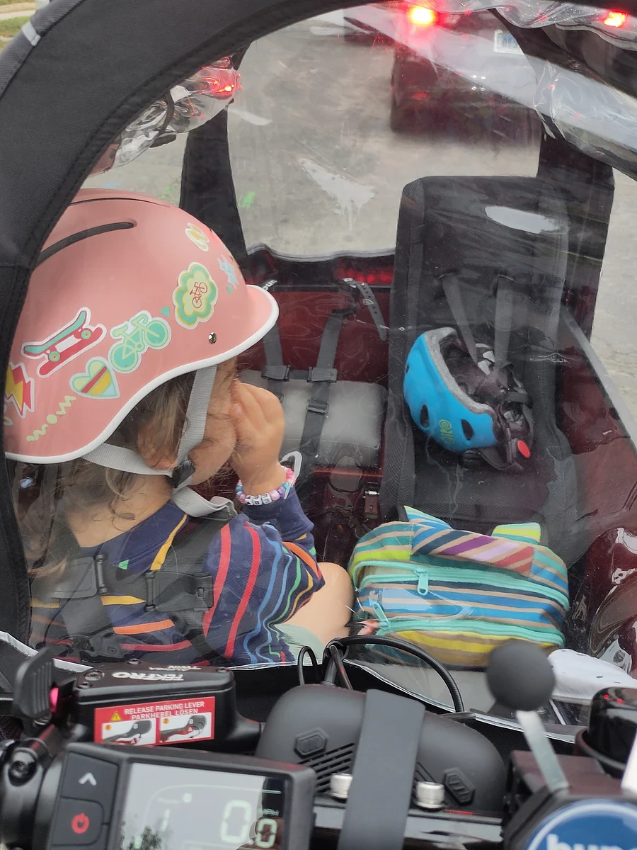 We love our Bunch Bike! We bought the bike to make our double dropoff routine more manageable. I've found that I can plan my mornings better, because I'm less impacted by traffic conditions while on the bike. And of course the decreased reliance on cars, increased exercise and fresh air are huge benefits. My kids and I also really benefit from the stability of a trike. The only thing I haven't fully adjusted to is worrying about a flat tire in a spot where I don't feel safe with kids running around.