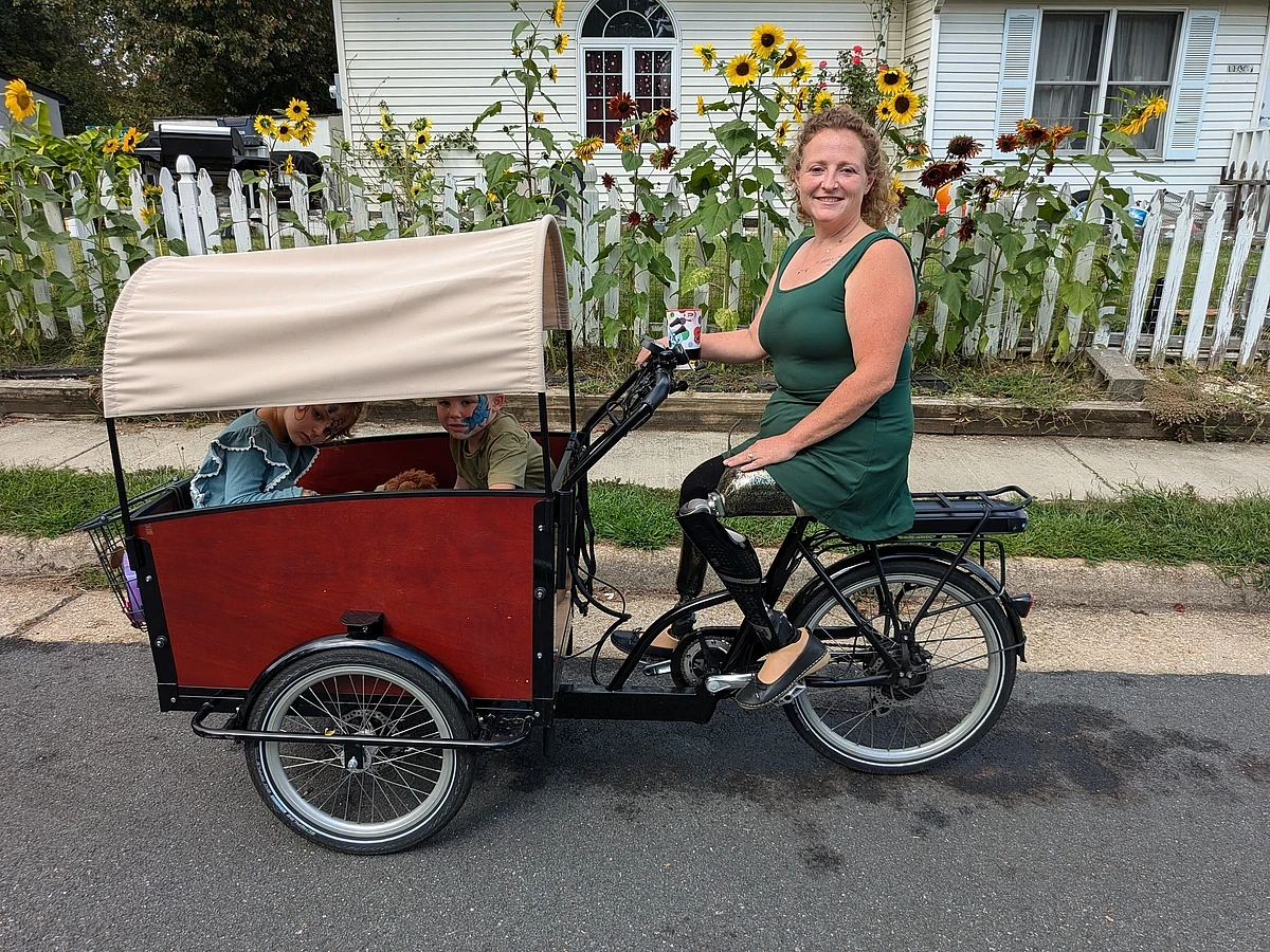 I am a double amputee with five children and a wonderful husband that is serving in the US Army. My two oldest sons are also serving in the US Army, I have a 7th grader at kindergartner and a son that just started Pre-K. The Army relocated us here in the DC area from Wichita, Kansas and we're excited to use our new bunch bike to discover all that Northern Virginia and DC has to offer! It gives our family the freedom to go places that we have never been able to go before.